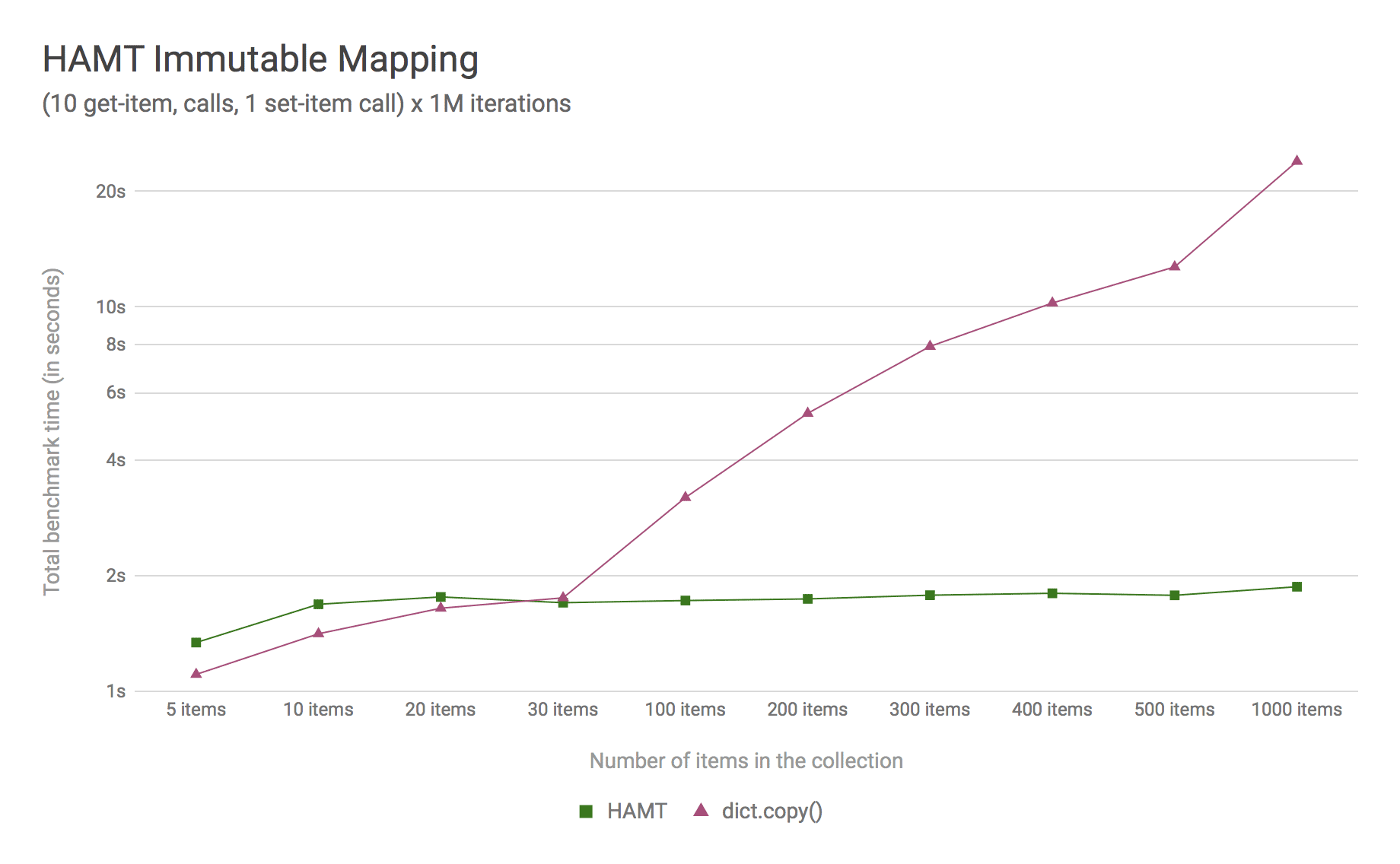 Figure 2 compares the lookup costs of dict versus a HAMT-based